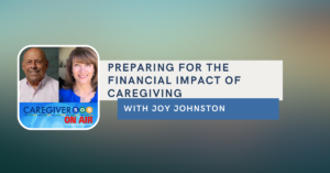 Joy Johnston joins hosts Ron Aaron and Carol Zernial to talk about preparing for the financial impact of caregiving on this edition of Caregiver SOS. About Joy: Joy Johnston is … Continue reading Preparing for the Financial Impact of Caregiving with Joy Johnston