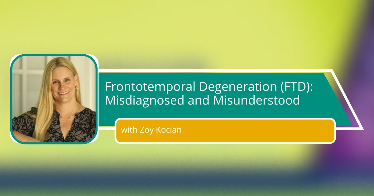 Join Zoy Kocian from the Association for Frontotemporal Degeneration for an informative discussion on this often misdiagnosed and misunderstood disease. Learn how Frontotemporal Dementia (FTD) differs from other types of dementia, explore its subtypes and symptoms, and discover the supports and services available to help families navigate the challenges of FTD.